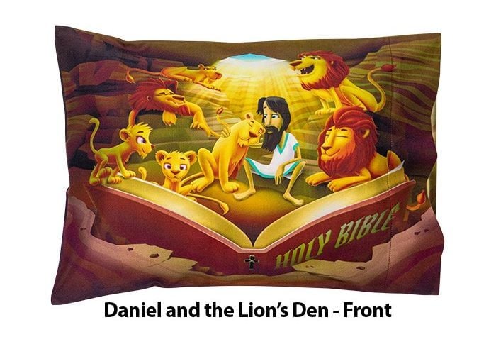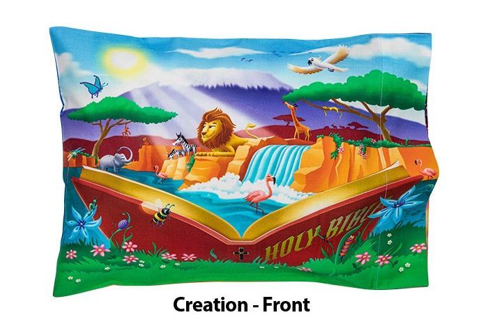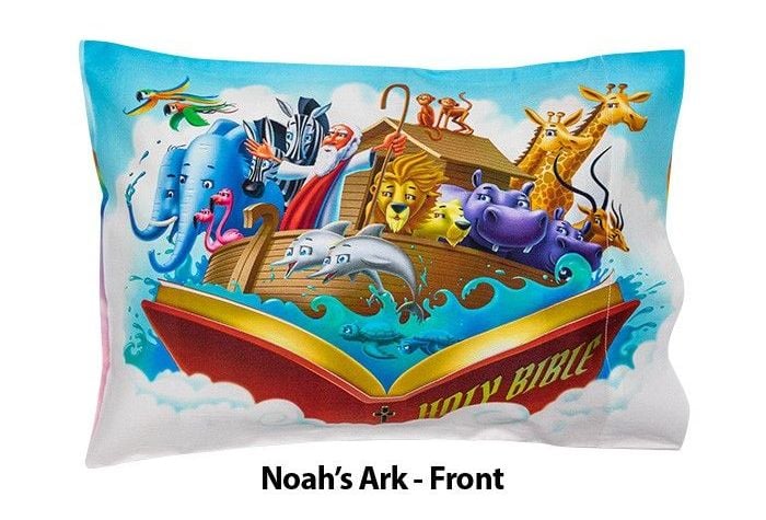 These unique childrens pillowcases (12″ x 18″) combine vibrant childrens bible story imagery (front). and the beloved childrens bible stories (back). that you can enjoy reading to your little one over and over again. Creation. Daniel and the Lions Den. Jonah and the Whale. Noahs Ark. and the story of Baby Jesus.
