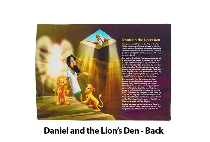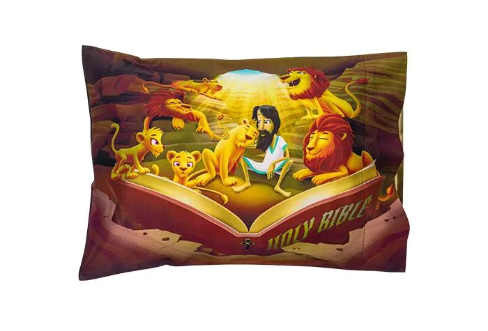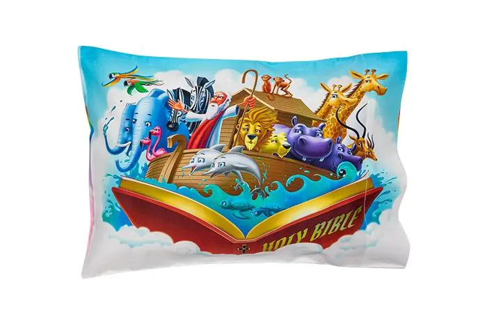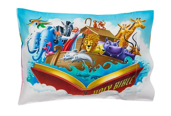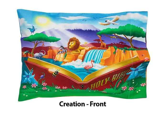This unique children’s pillowcase (12″ x 18″) combines vibrant children’s bible story imagery (front), and the beloved children’s bible stories (back), that you can enjoy reading to your little one over and over again. Choose your favorite or collect them all! Creation, Daniel and the Lion’s Den, Jonah and the Whale, Noah’s Ark, and the story of Baby Jesus.