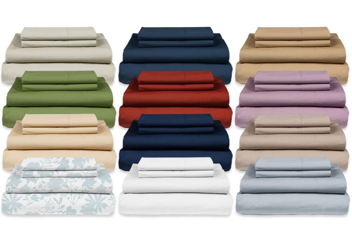 Full Set – 1 flat sheet 90 x 100. 1 fitted sheet 54 x 76 x 17. 2 pillowcases 21 x 34