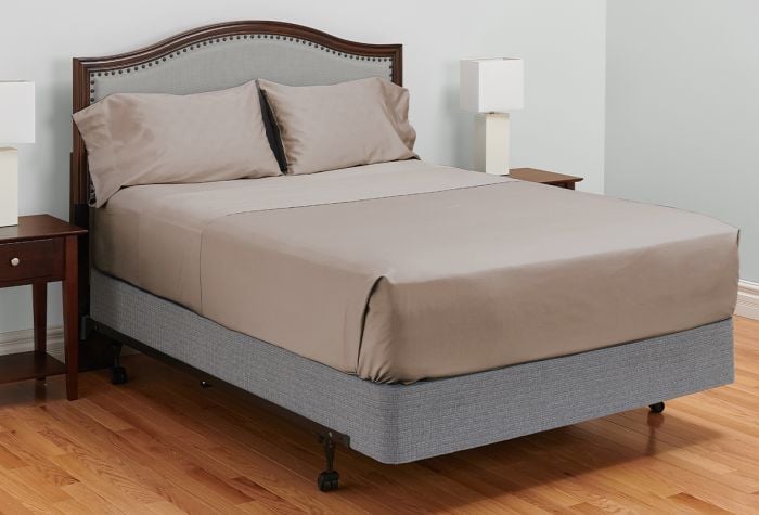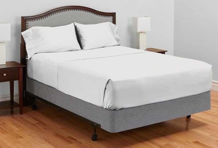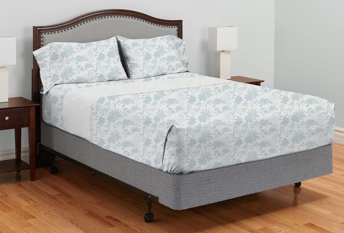 Split King Set – 1 flat sheet 110 x 108. 2 fitted sheets 39 x 80 x 15. 2 pillowcases 21 x 40