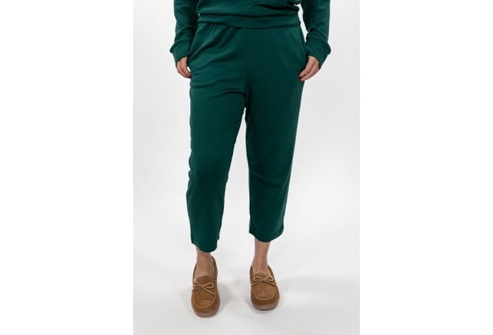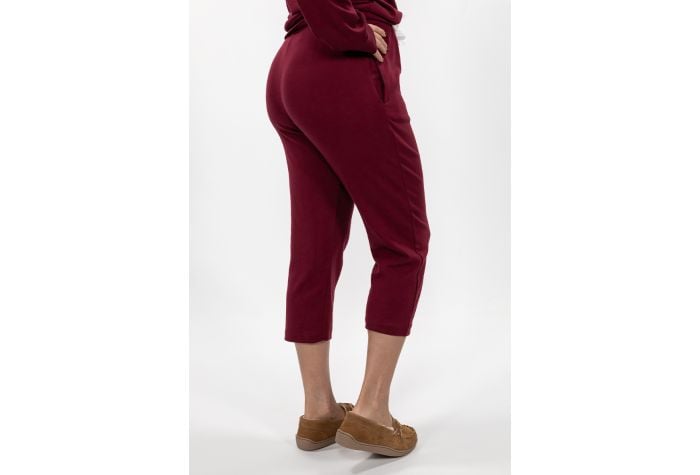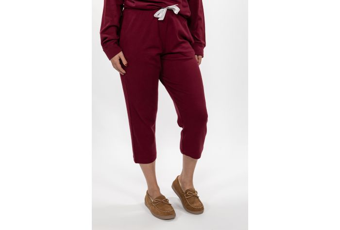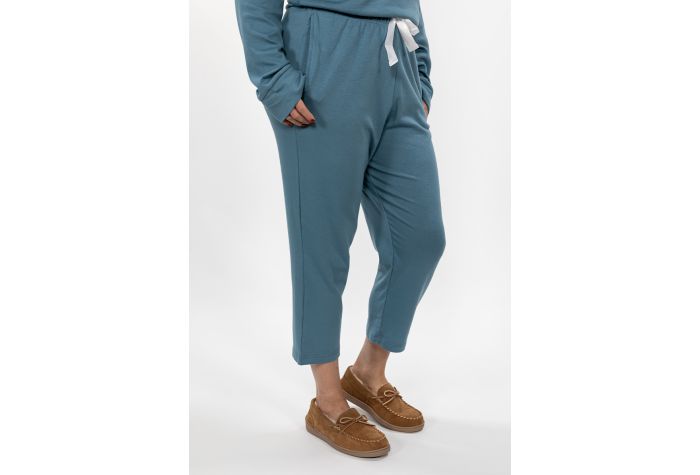 These perfectly cropped sleep pants are tied up with a bow with it’s beautiful ribbon drawstring. They are extremely comfy on cotton/modal/spandex fabric and feature side seam pockets. Don’t forget to complete the look with its matching Cross Over Sleep Top.